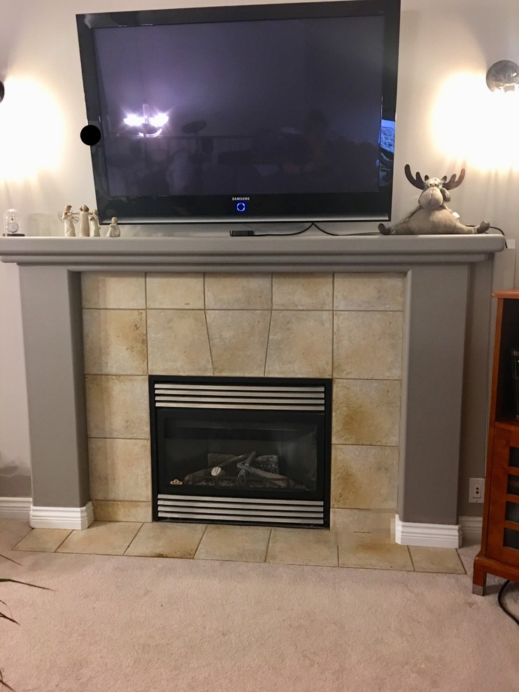 Diy Tile Fireplace Makeover Come Stay Awhile By Amanda Vernaci Modern Farmhouse Diy Home Renovation